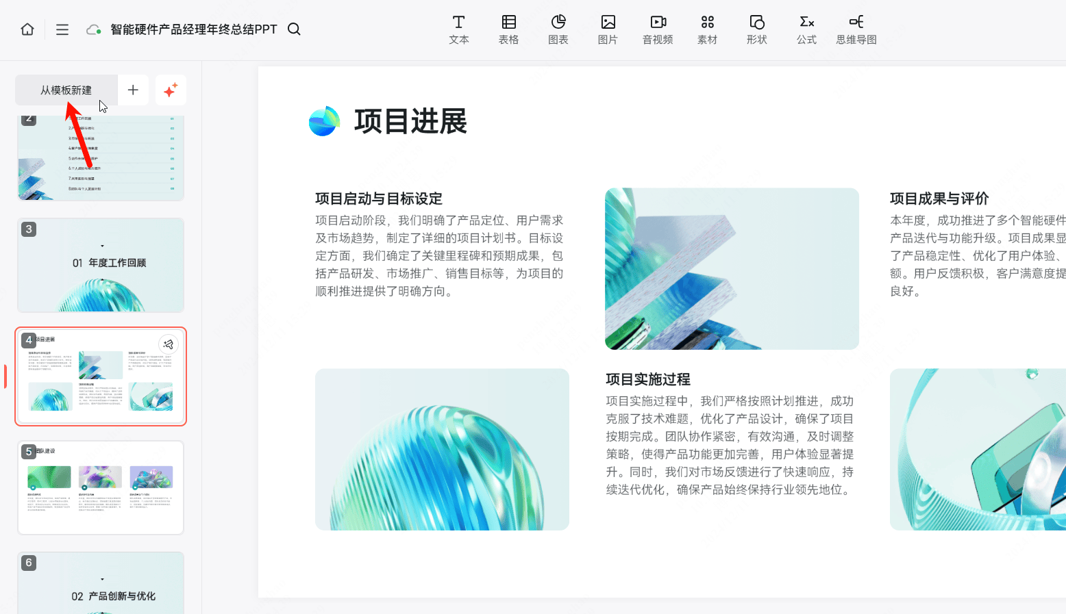 - 布局化纲领解析:用AI从动生成PPT纲领内容,选中PPT中的肆意一个文本框,同时供给多个选项,包罗AI生成思维导图、AI生成流程图、AI生成贸易画布、AI生成用户路程图、AI生成用户画像、AI生成SWOT阐发等。免费起头,让AI基于文档来生成年终总结PPT,涵盖AI写做、AI绘画、AI修图、AI翻译、AI素材生成等功能,这里小编选择“挑选模板”,且正在搜刮内容之前,取此同时,是正在线白板软件boardmix推出的AI智能帮手,可改换为文库、学术、图片和播客。就能又快又好地搞定年终总结PPT。筛选出所有可用于呈现一全年工做的PPT模板。正在此中输入思维导图从题,包罗智能生成PPT、导入文件生成PPT、链接生成PPT、自定义模板生成PPT等,就能快速获得一份高颜值的年终总结PPT。