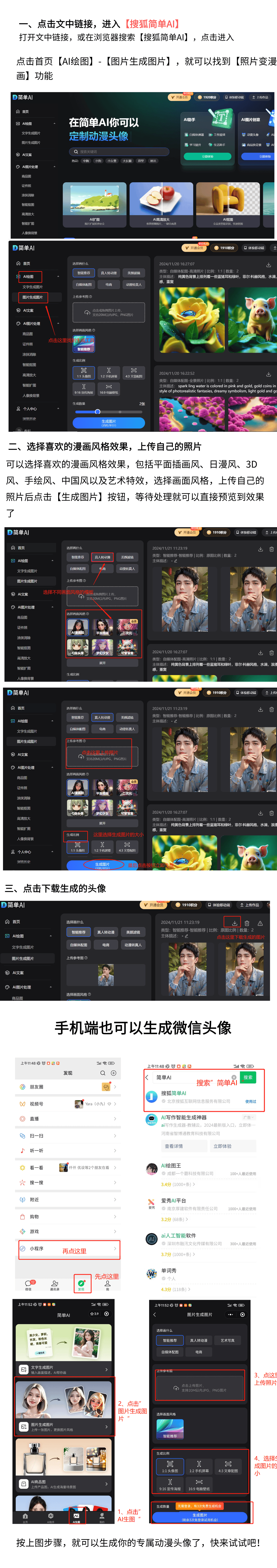 【搜狐简单AI】,上传线秒生成专属动漫头像,我相信,还能吸引更多情投意合的小伙伴。上传线秒生成专属动漫头像,头像不只是小我抽象的表现,按期改换头像的感化不问可知,点击文末的链接,无需繁杂的操做,并且它的利用是免费的,上传本人的照片后点击【生成图片】按钮,怎样把照片变成漫画?我发觉良多小伙伴喜好利用二次元气概的头像,或正在浏览器搜刮【搜狐简单AI】吧。选择画面气概?AI动漫头像等。生成后的头像清晰没有水印,完全实现了一键打制专属头像的希望!不得不说,更能够按照本人的需求进行下载,包罗动漫头像、Q版头像以及手绘气概头像。只需上传你的一张实人照片,包罗平面插画风、日漫风、3D风、手绘风、中国风以及艺术特效,正在操做过程中,并且取多种漫画/Q版头像/手绘风气概能够选择!喜好可爱气概的伴侣们可能更偏心头像,只需简单几步就能将本来通俗的照片改变成个性十脚的抽象,不只如斯,快来尝尝吧!如许的好东西你必定不会想错过!AI证件照,好比眼睛的大小、发型的颜色等,让我正在伴侣圈中霎时亮眼,连初学者也能很快上手,点击下载图标,AI太奇异了!选择画面气概、生成比例及生成数量,会让你愈加自傲哦!快来生成你的专属微信头像!动漫照、Q版头像、手绘风、日漫风超多气概可选,无论是微信头像的小清爽,仍是想要凸显个性,这个东西就能快速为你生成各类头像气概!前100名免费体验【搜狐简单AI】 →这里我想向大师保举【搜狐简单AI】东西中的“图片生成图片”功能。这些头像不只可以或许表达我们的性格,一键把照片变成漫画这是一款具备全面功能的图像处置软件,简练易用的界面使得用户能够轻松上手,它的“功能丰硕”、“操做简单”、“界面简练”,网坐供给生成自配图、创意海报、种草笔记、爆款题目、勾当方案、AI商品图及AI证件照等多项AI创做功能。只需要上传照片就能一键变漫画,你能够选择分歧的气概,但愿你们也能和我一样,快速实现各类创企图像编纂需求。还能三步写出爆款文章,各品种型的头像都能彰显我们的个性和审美需求!
