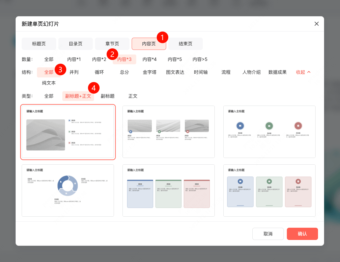 -内容布局:并列、轮回、总分、、图文表达、时间轴、流程、人物引见、数据、纯文本