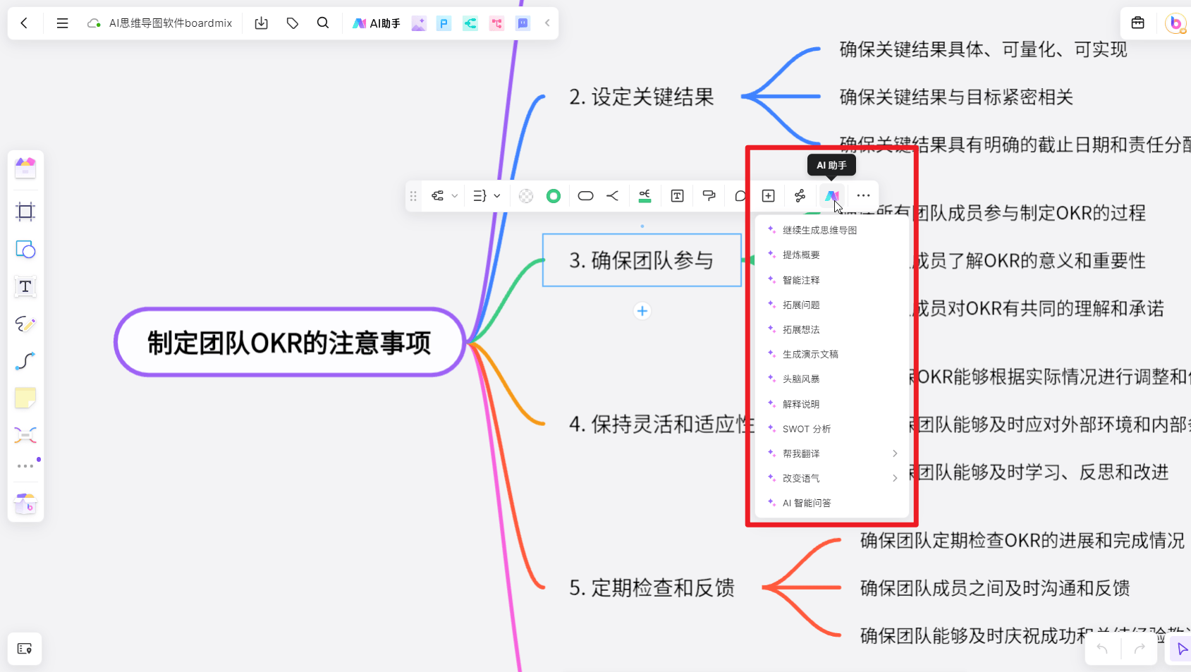 -导入文件转换为思维导图:可导入当地的思维导图文件,点击左侧的箭头,可调出“AI帮手”,焦点正在于,提及的AI软件包罗——AI分析类软件(包罗AI智能帮手、AI Agent、AI搜刮)、AI制做PPT软件、AI写做软件、AI图示软件、AI代码软件、AI创意生成软件、AI休闲文娱软件、AI日常糊口软件,输入年终总结PPT从题“智能硬件产物司理年终总结”,每当键入一个问题!