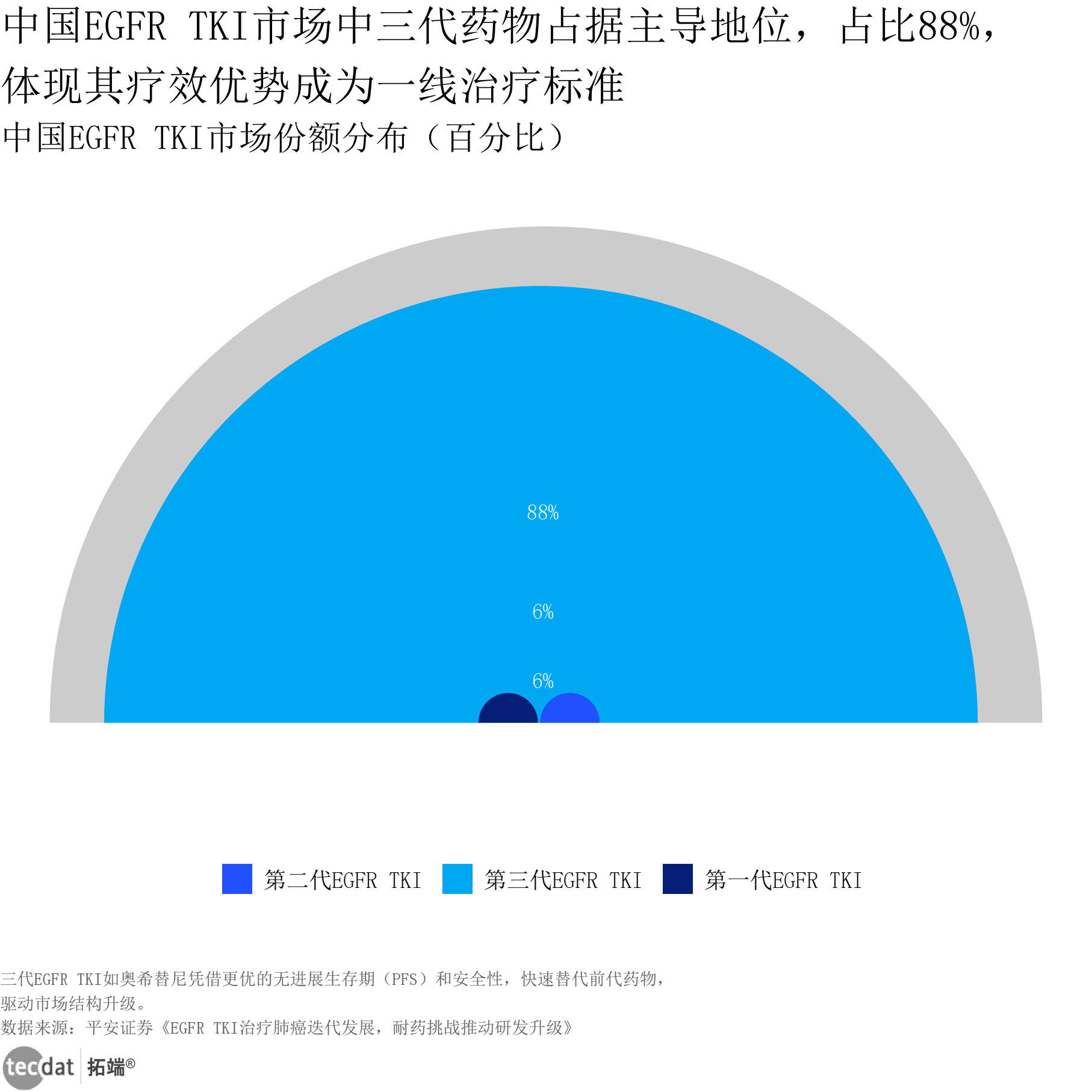 中国EGFR TKI市场份额分布半圆面积图表3数据EXCEL及图表PDF模板已分享到会员群